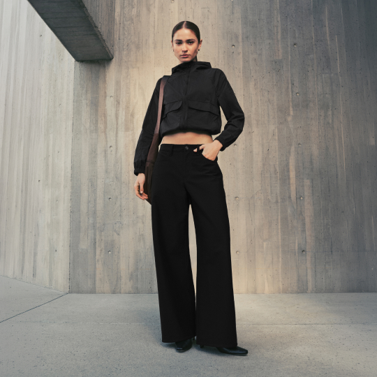 女士五袋款经典剪裁低腰阔腿裤