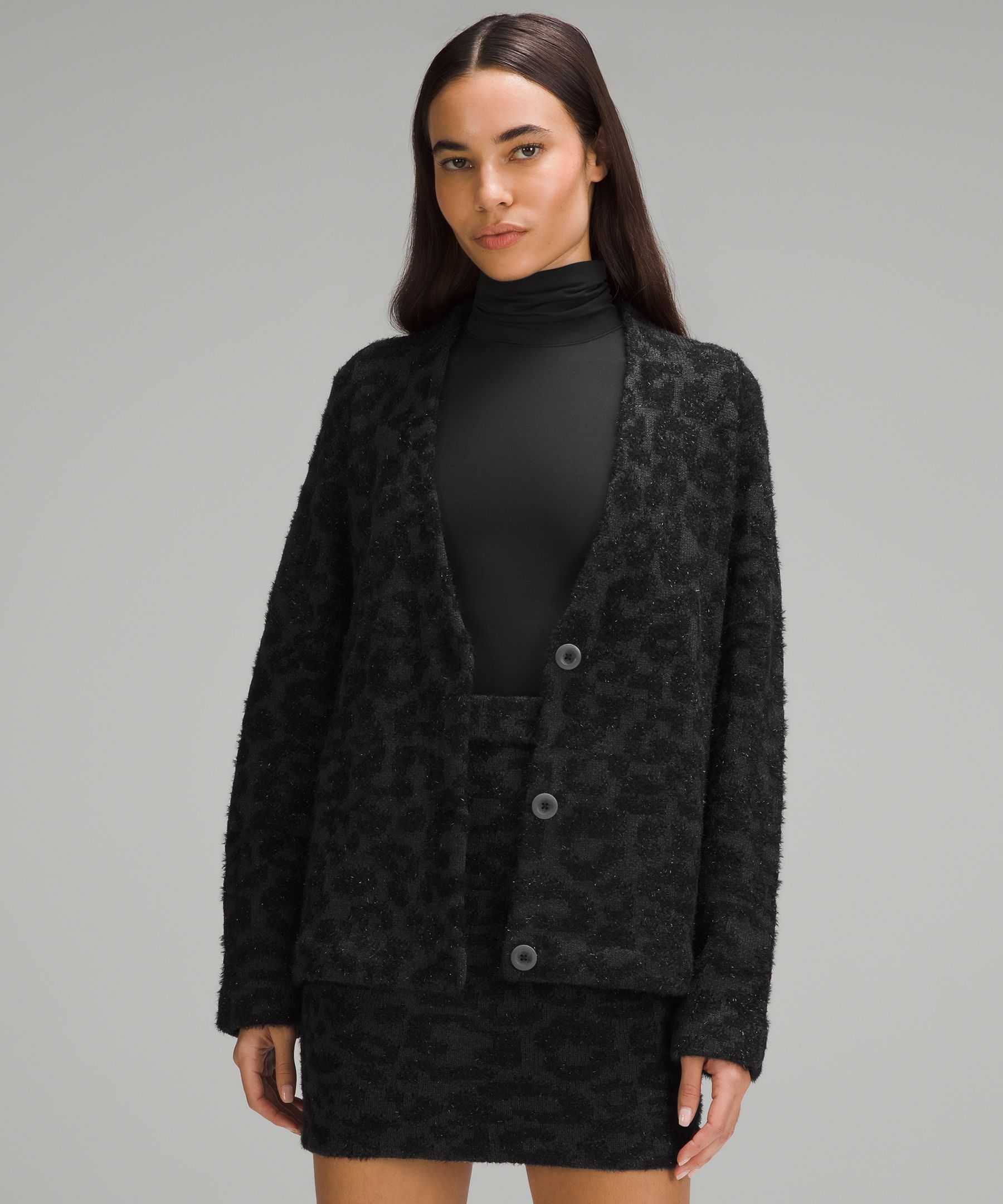 Wool-Blend 女士羊毛混纺提花开衫