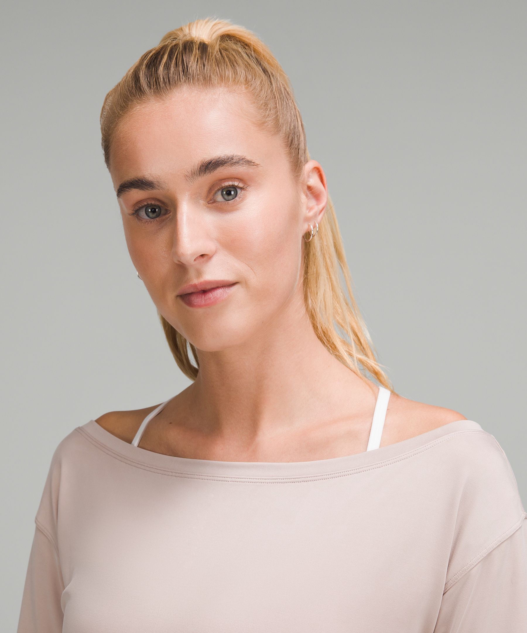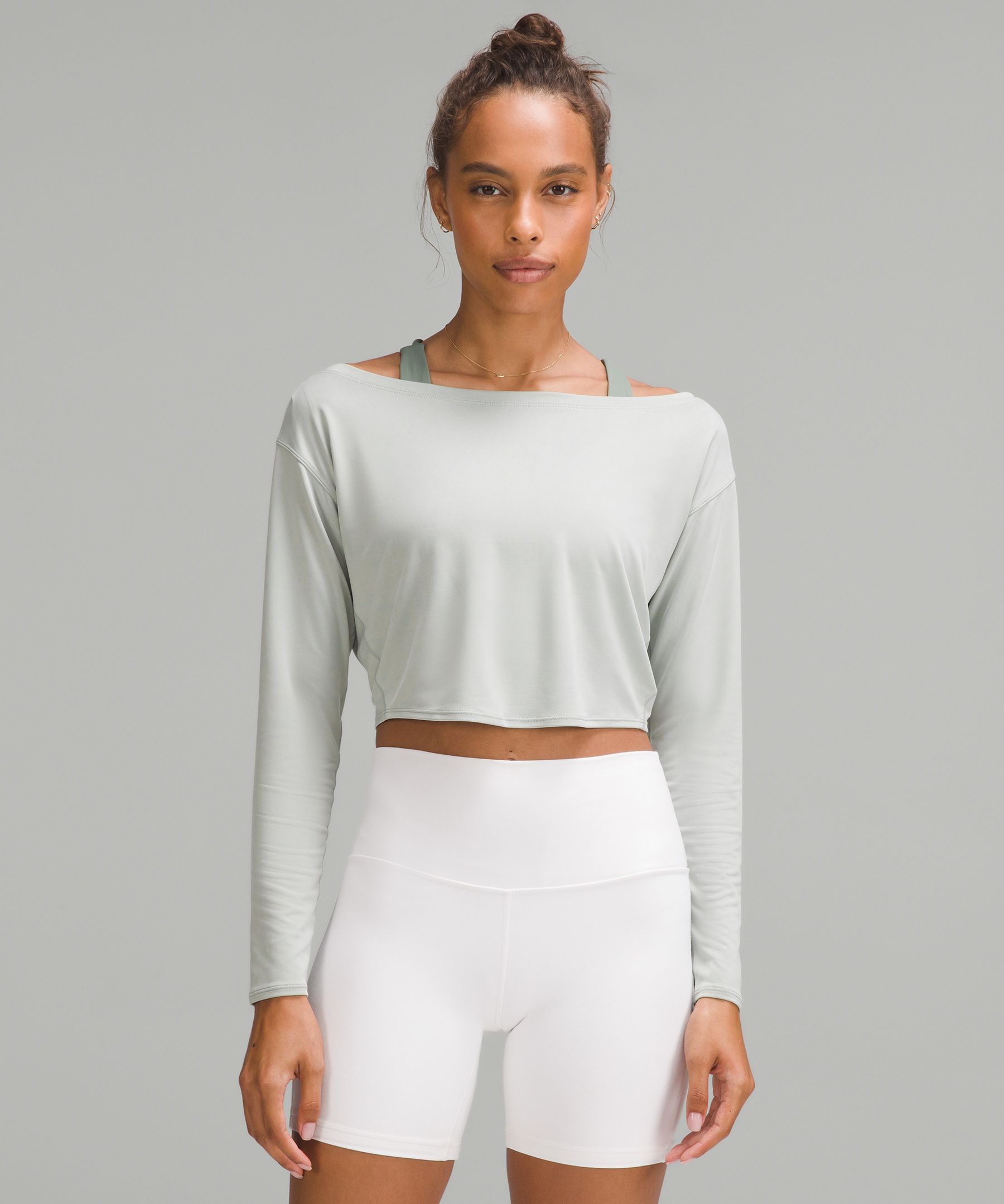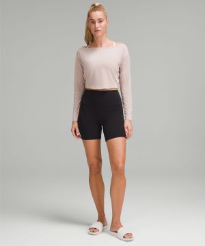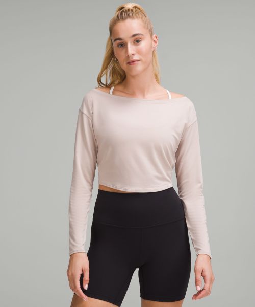 Cupro 女士铜氨纤维船型领口短款长袖 T 恤