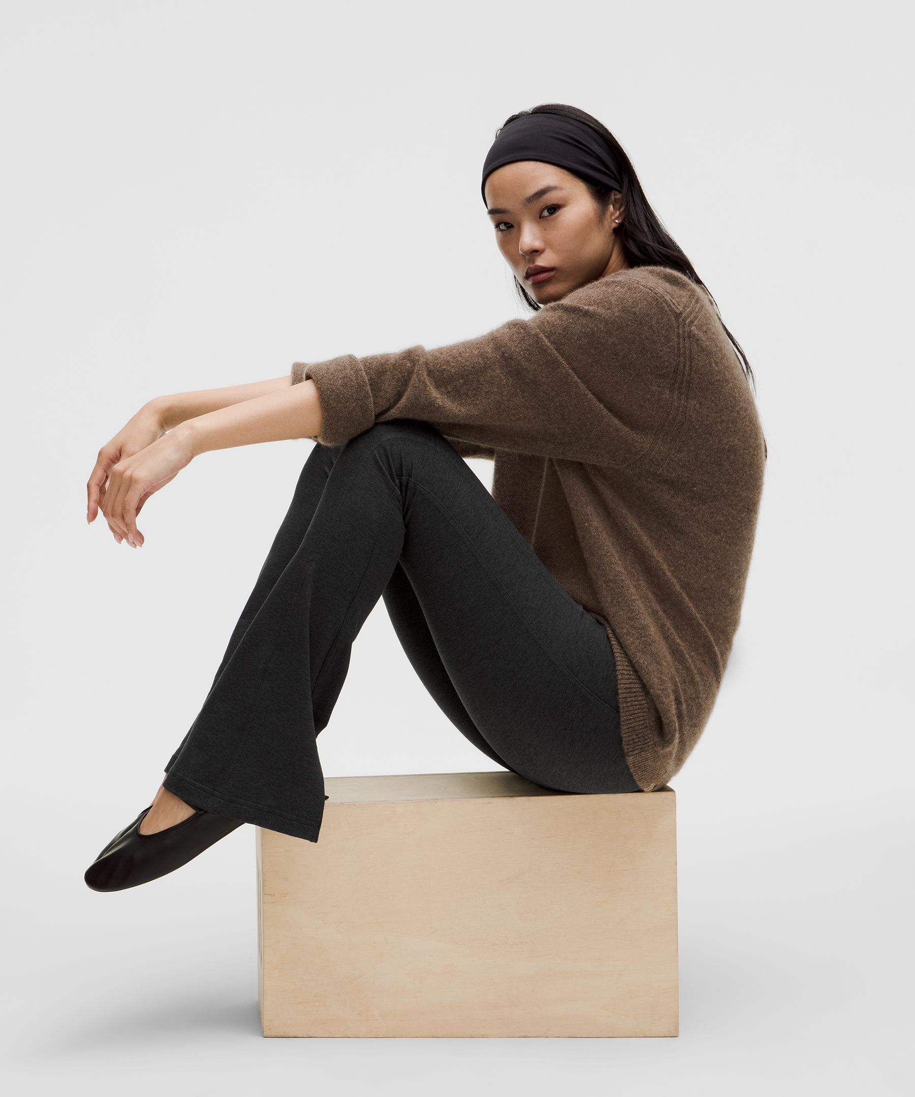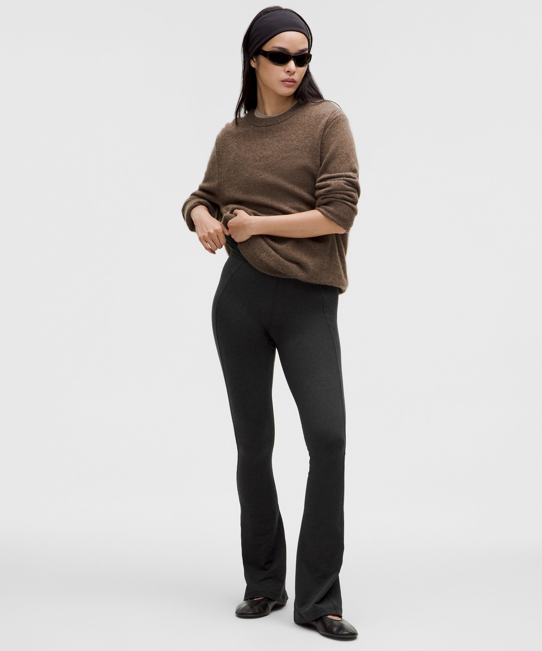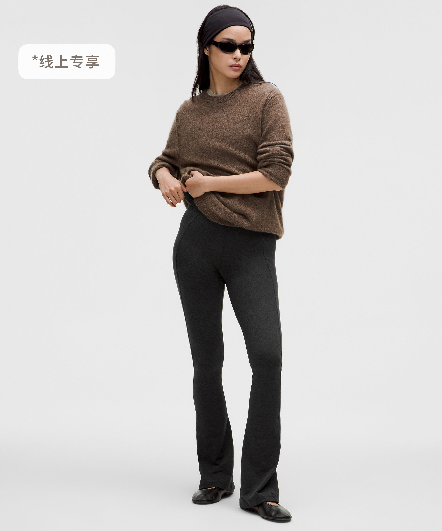 < img height="1" width="1" style="display:none" src="https://a.gdt.qq.com/pixel?user_action_set_id=1110055868&action_type=PAGE_VIEW&noscript=1"/> Soft Sueded 女士运动绒面裤脚后开口微喇裤 *常规偏短|露露乐蒙中国大陆官网