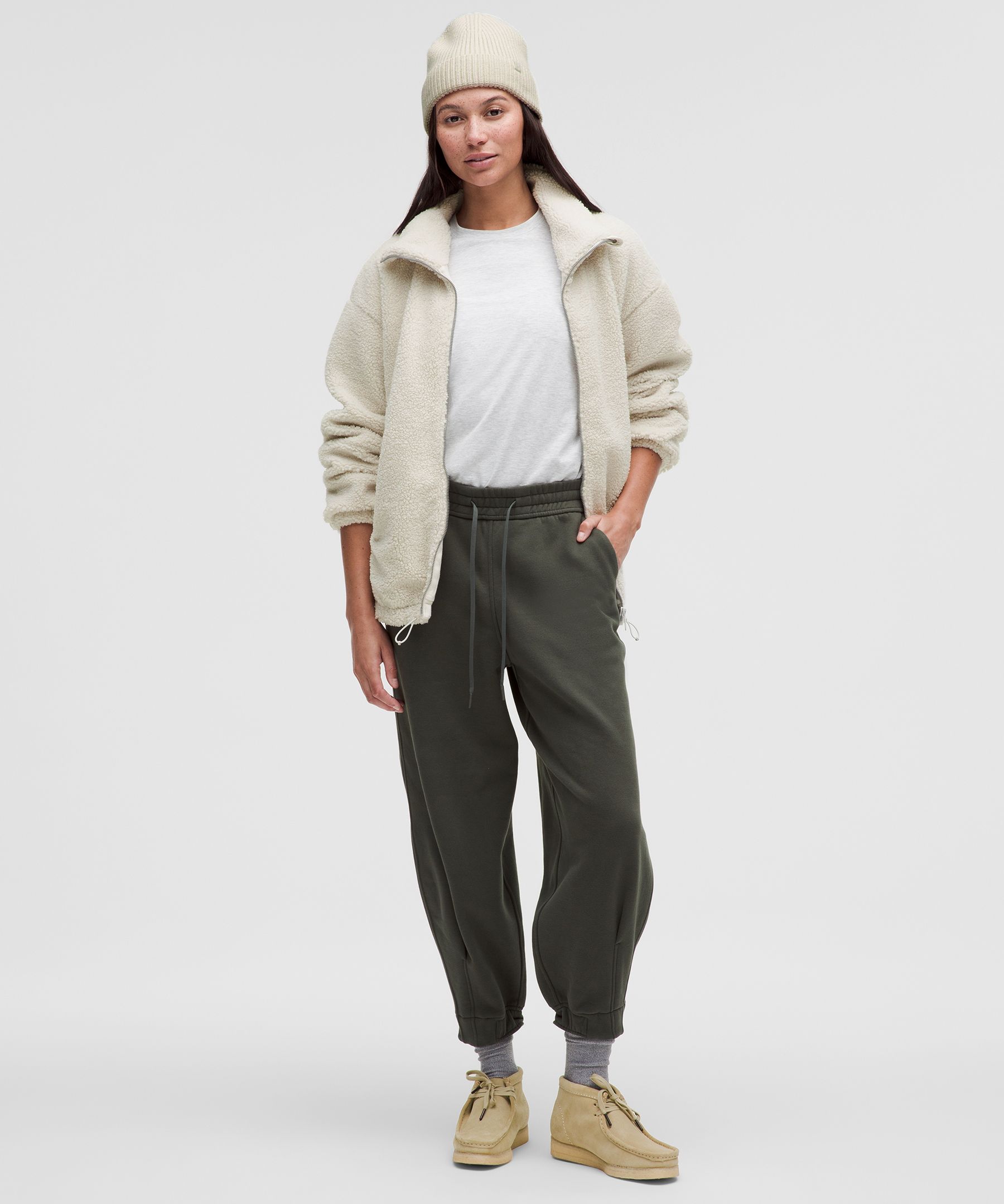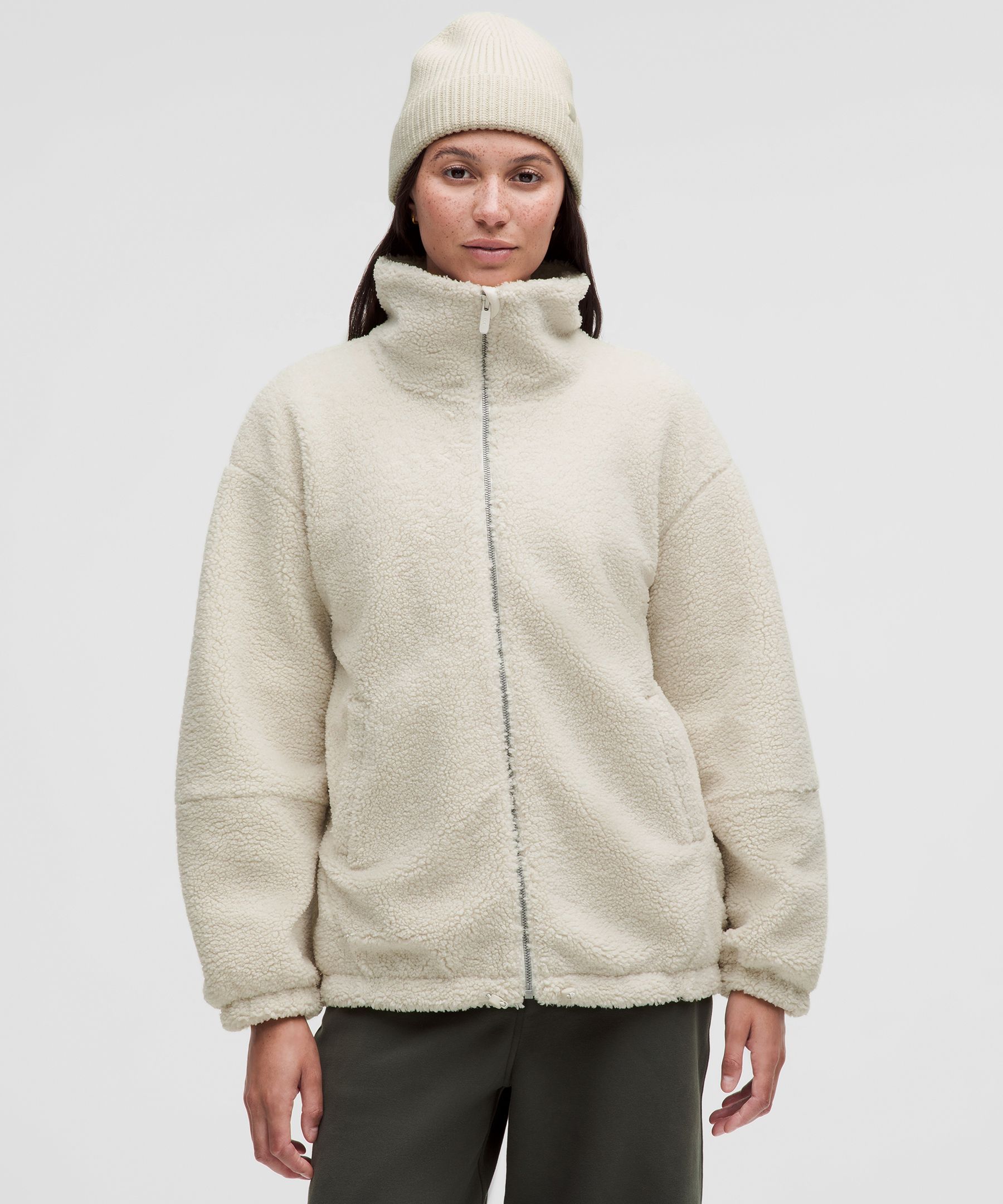 Textured Fleece 女士纹理拉绒带抽绳拉链外套