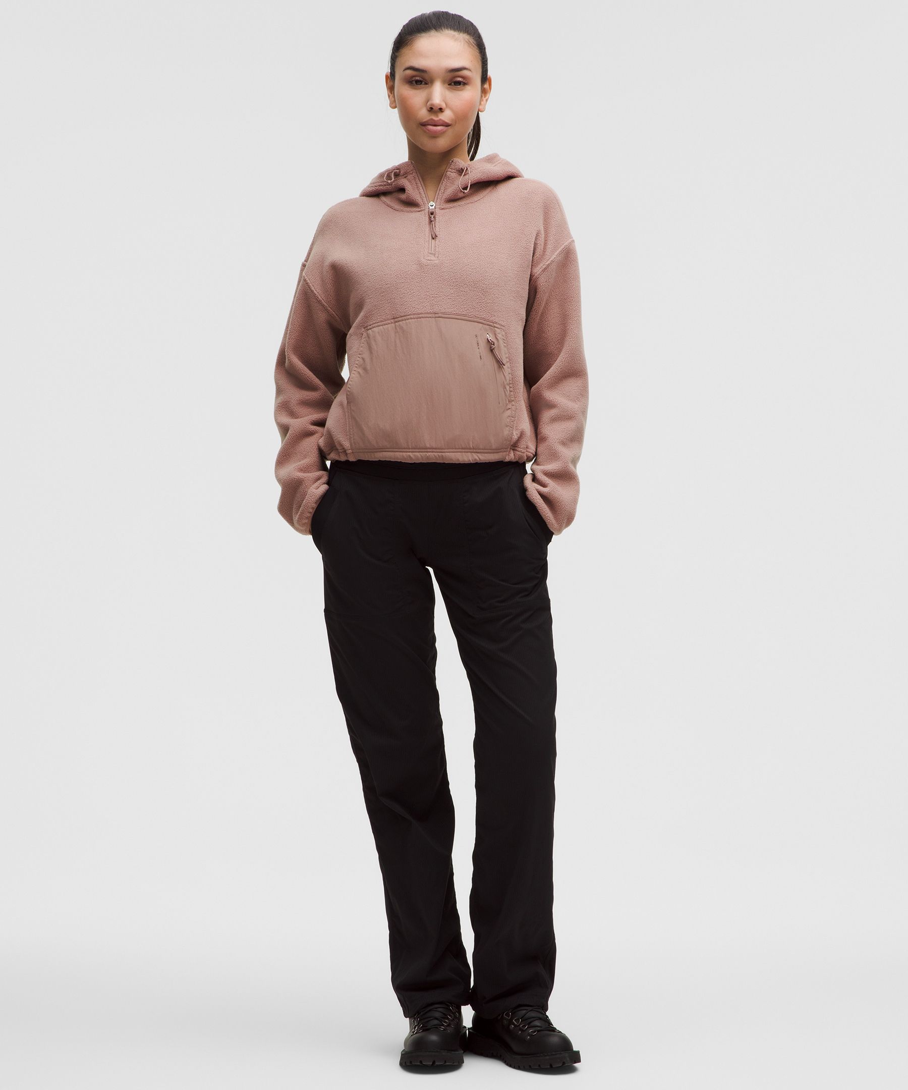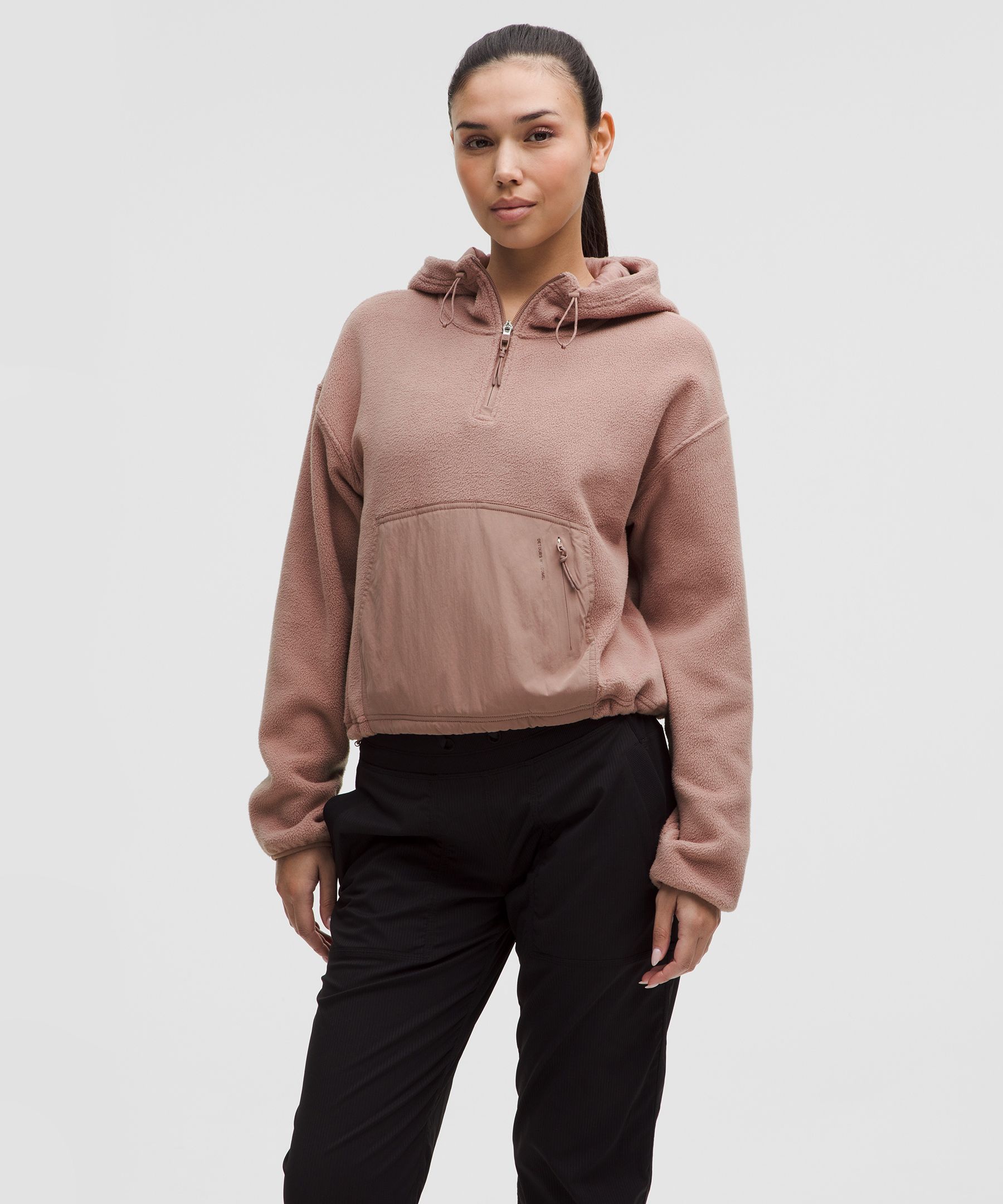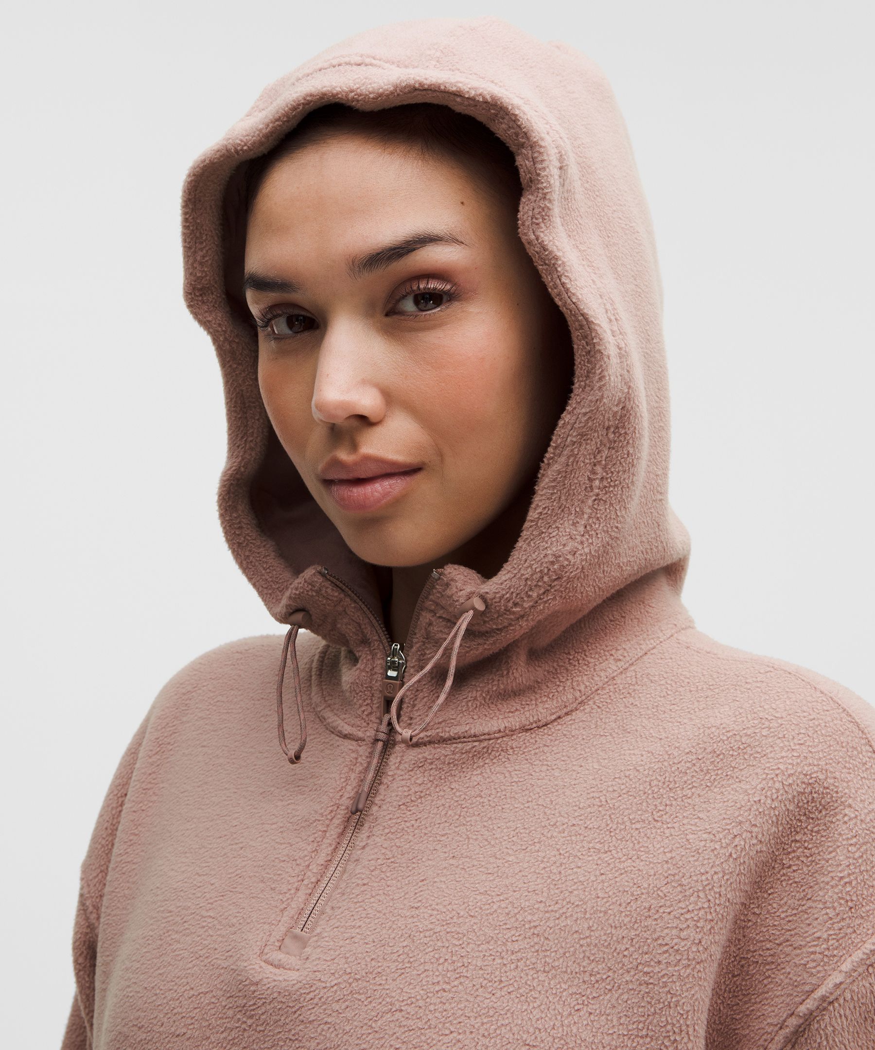 Fleece 女士运动拉绒半拉链连帽衫