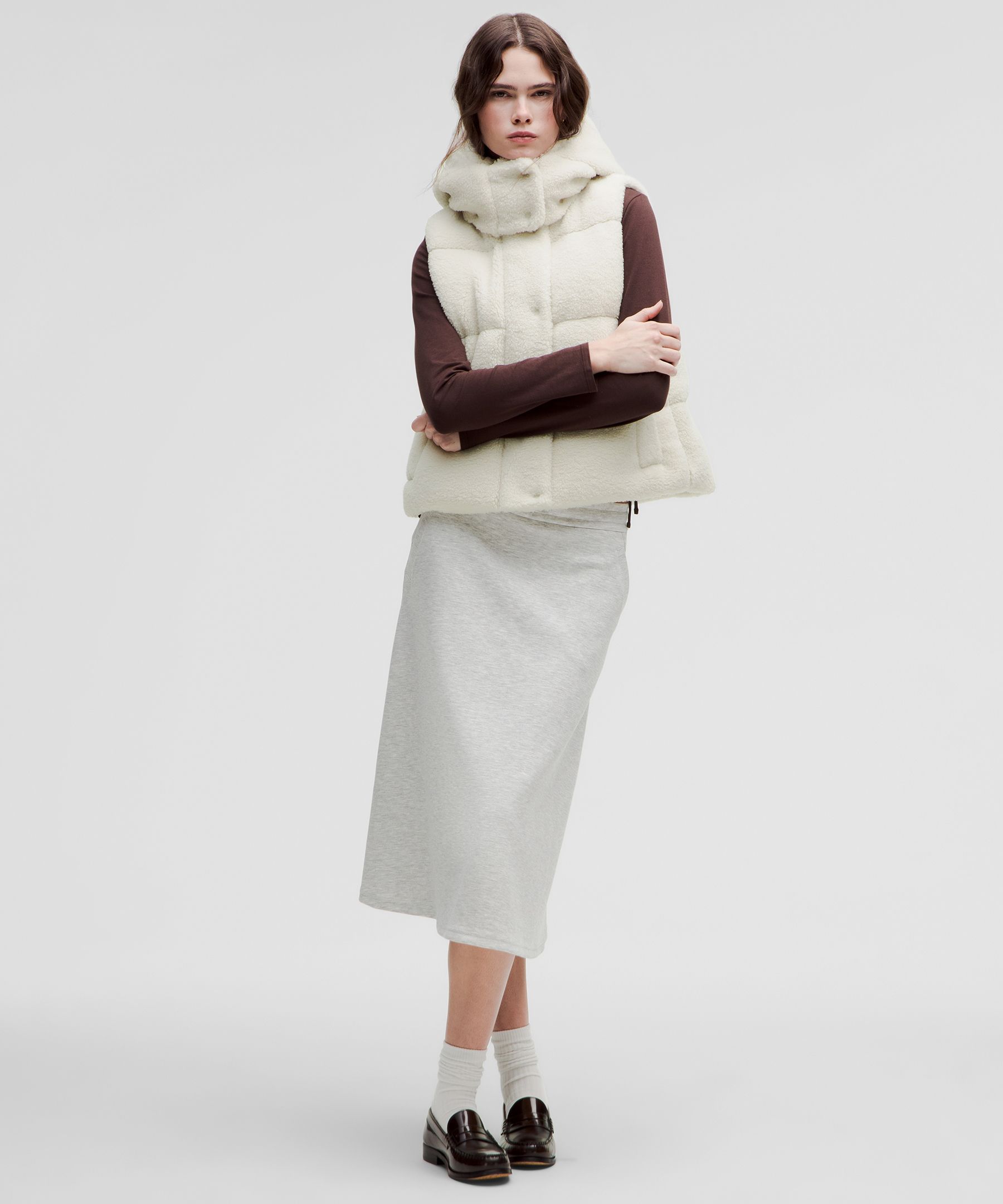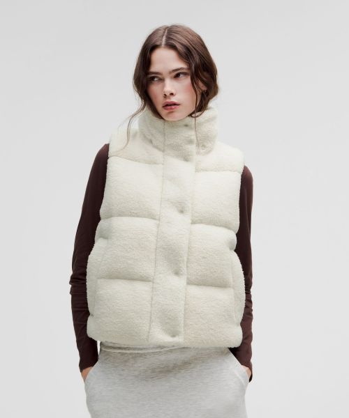 < img height="1" width="1" style="display:none" src="https://a.gdt.qq.com/pixel?user_action_set_id=1110055868&action_type=PAGE_VIEW&noscript=1"/> Wunder Puff 女士短款羽绒马甲 *纹理拉绒|露露乐蒙中国大陆官网