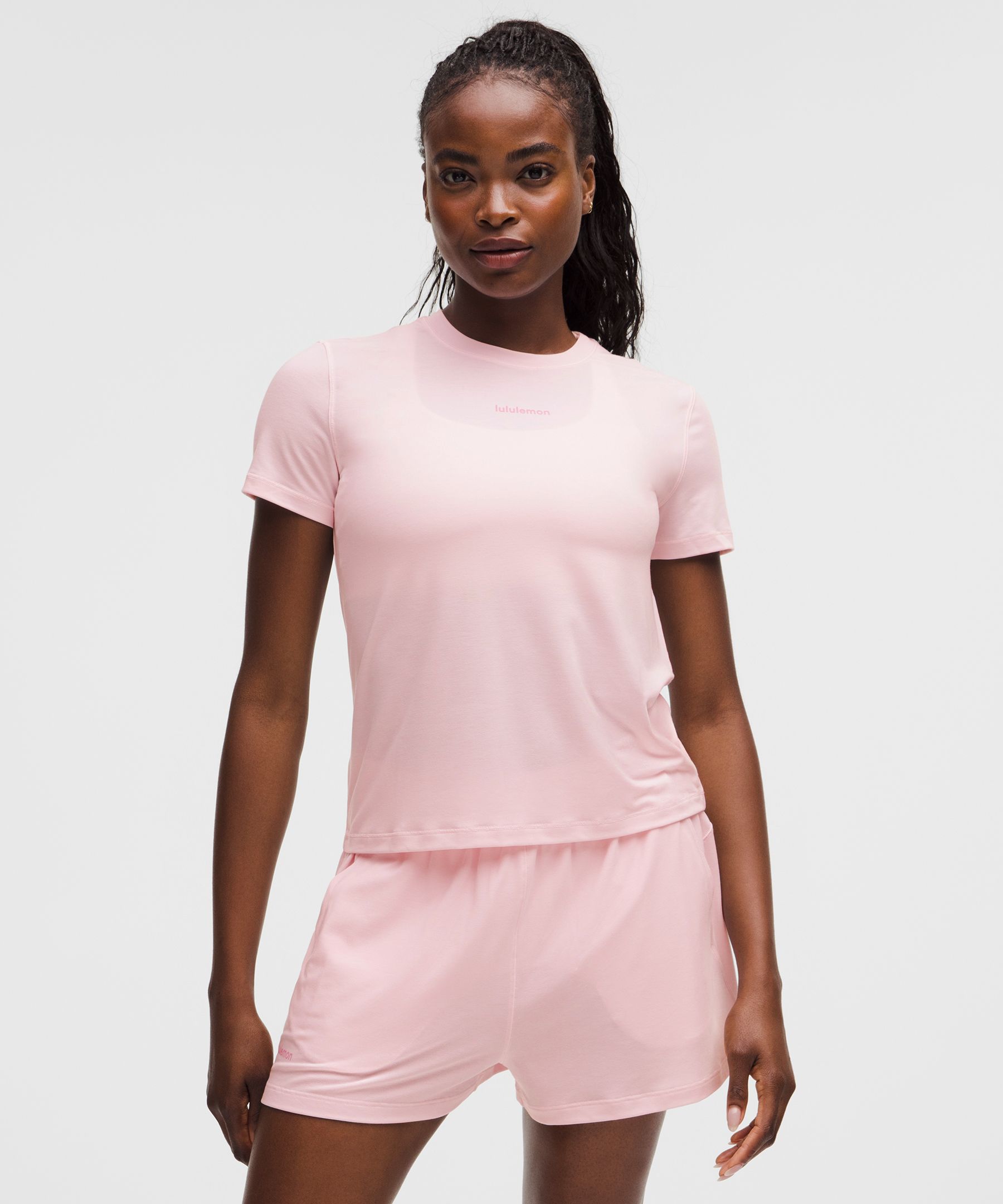 Jersey 女士训练经典剪裁平纹针织短袖 T 恤 *文字徽标