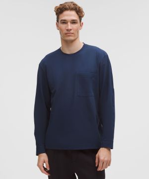 Pique 男士珠地超宽松剪裁口袋款长袖 T 恤