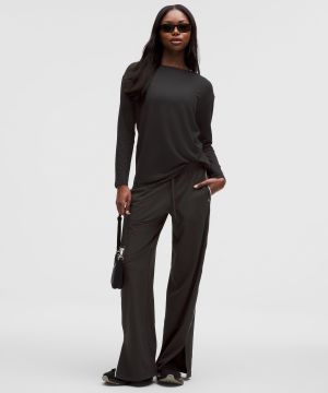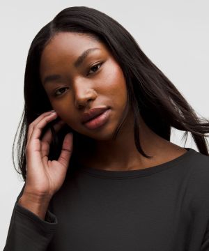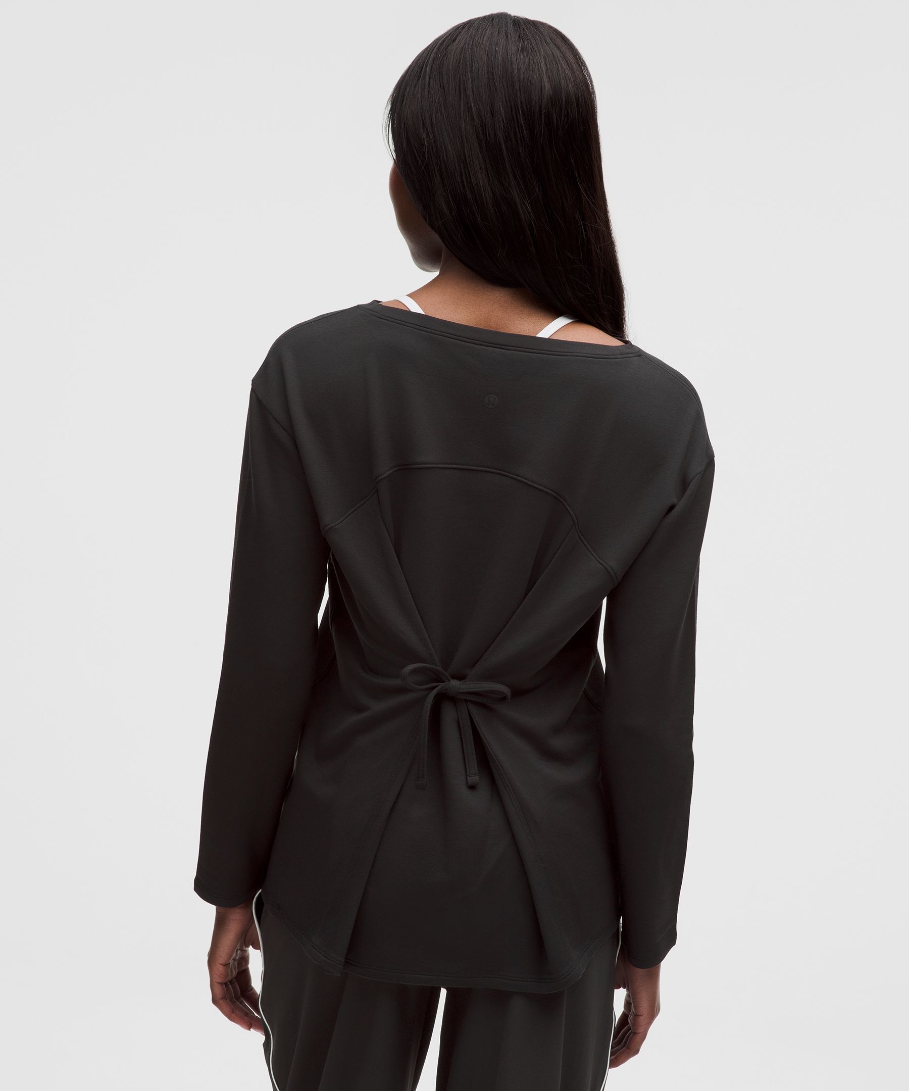 Tie-Back 女士莫代尔拉绒后侧系带船型领口长袖 T 恤