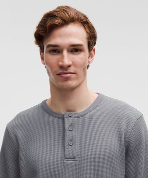 Cotton-Blend 男士棉混纺华夫格针织长袖亨利衫