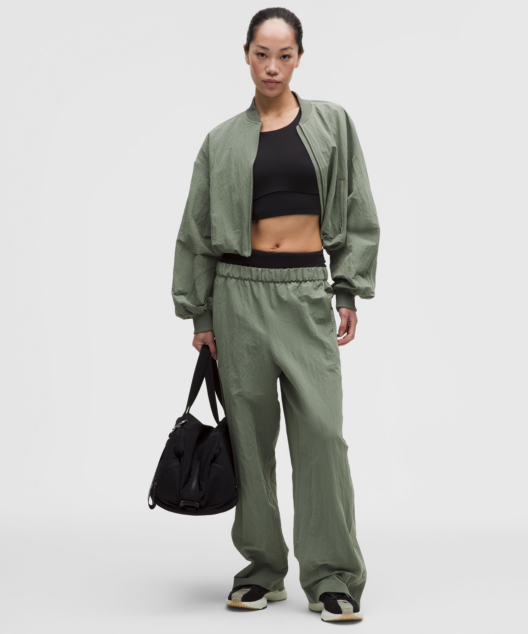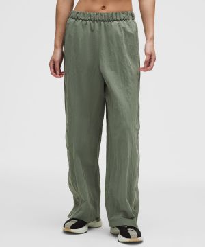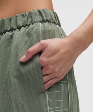 Crinkle Nylon 女士褶皱尼龙中腰运动裤 *文字徽标