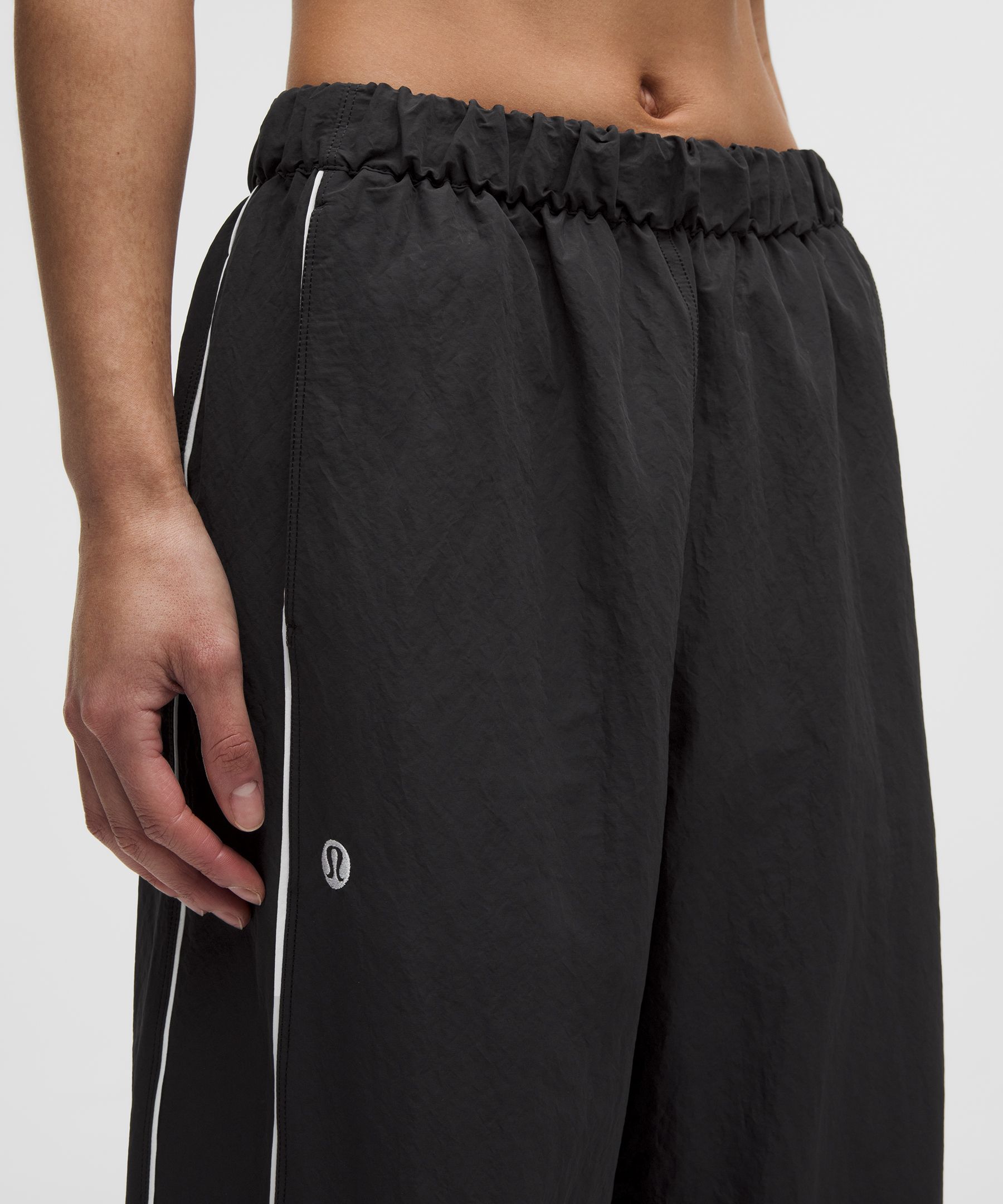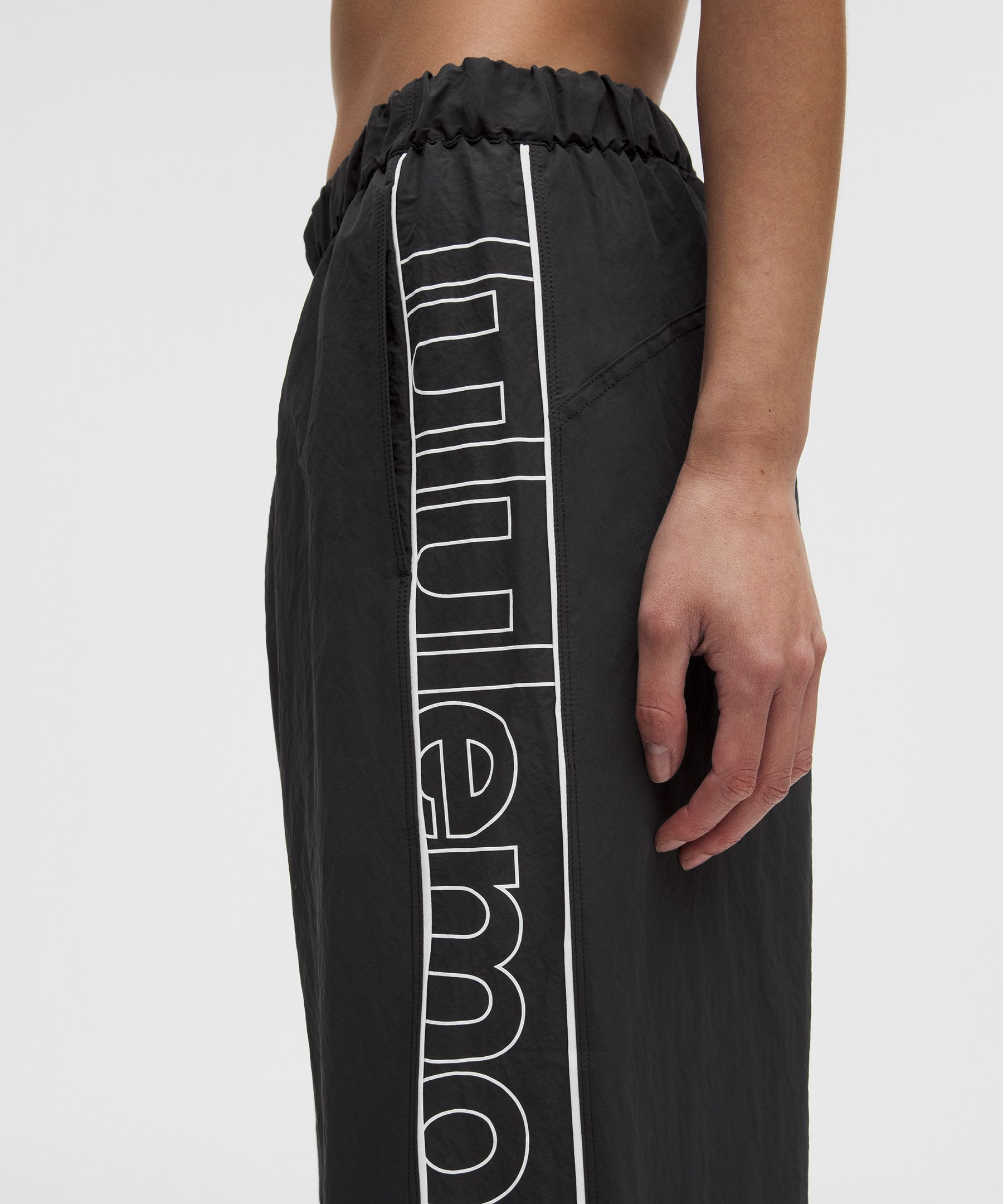 Crinkle Nylon 女士褶皱尼龙中腰运动裤 *文字徽标