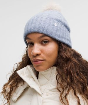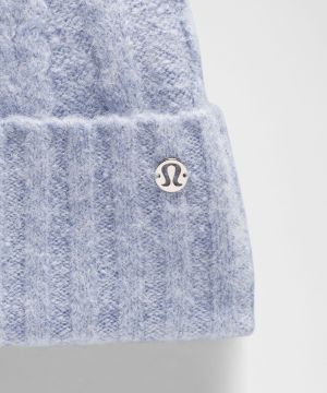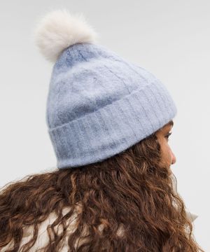 Cable-Knit 女士拉绒内衬绒球绞花针织帽