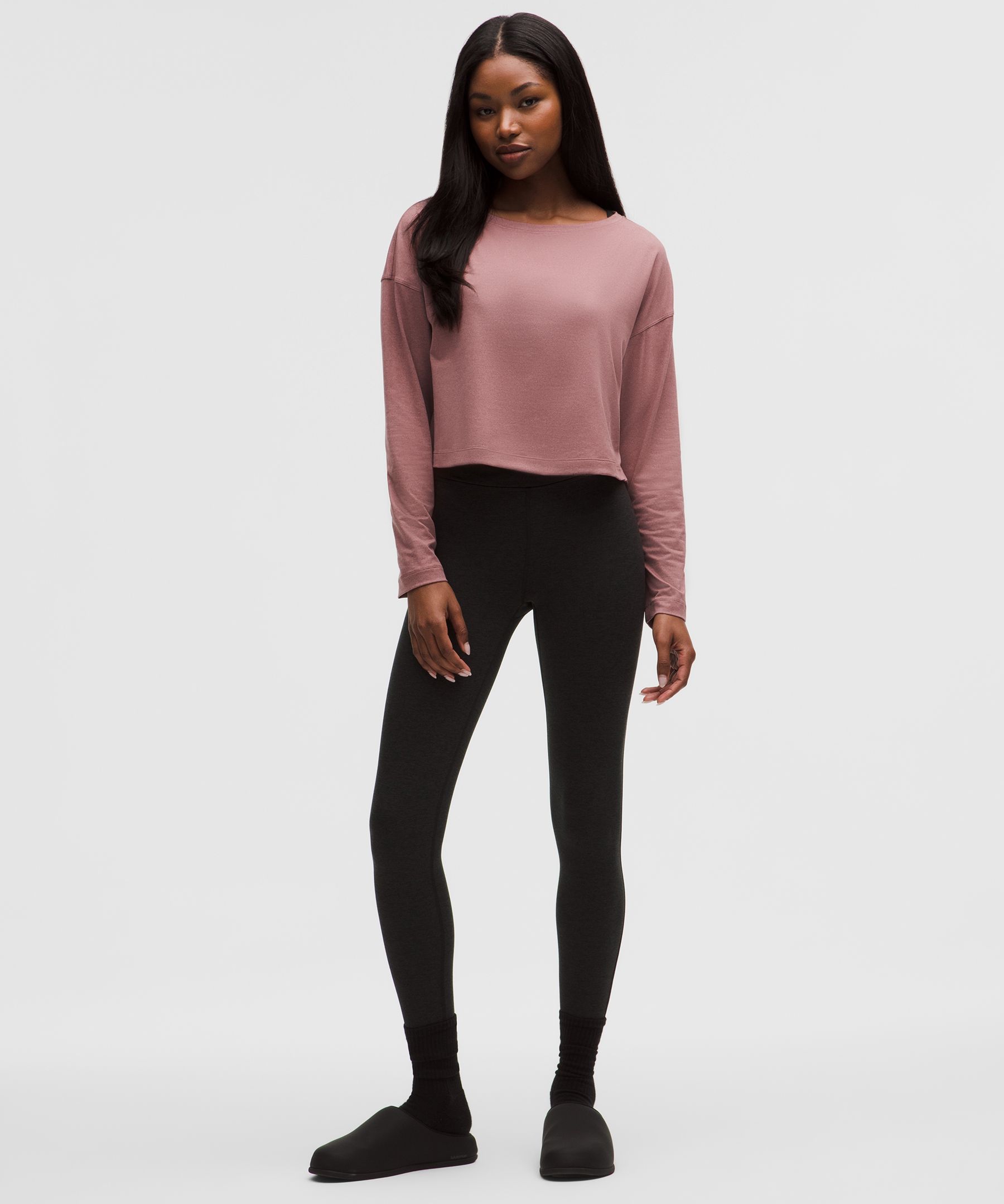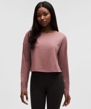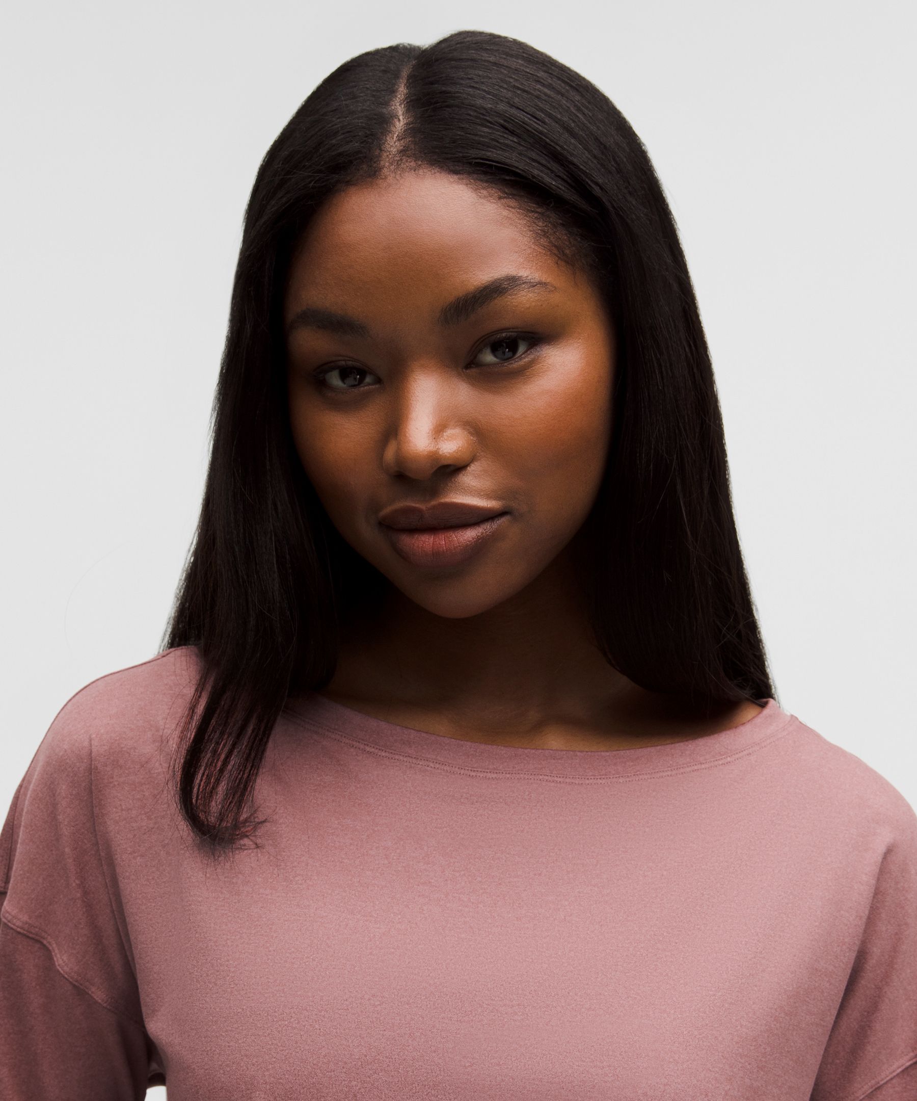 Softy Suedey 女士宽松剪裁船型领口长袖 T 恤 *后侧缝线