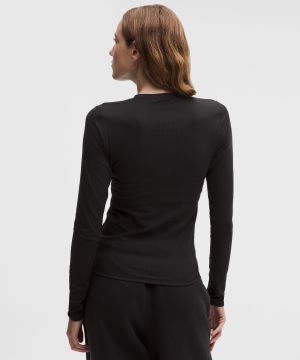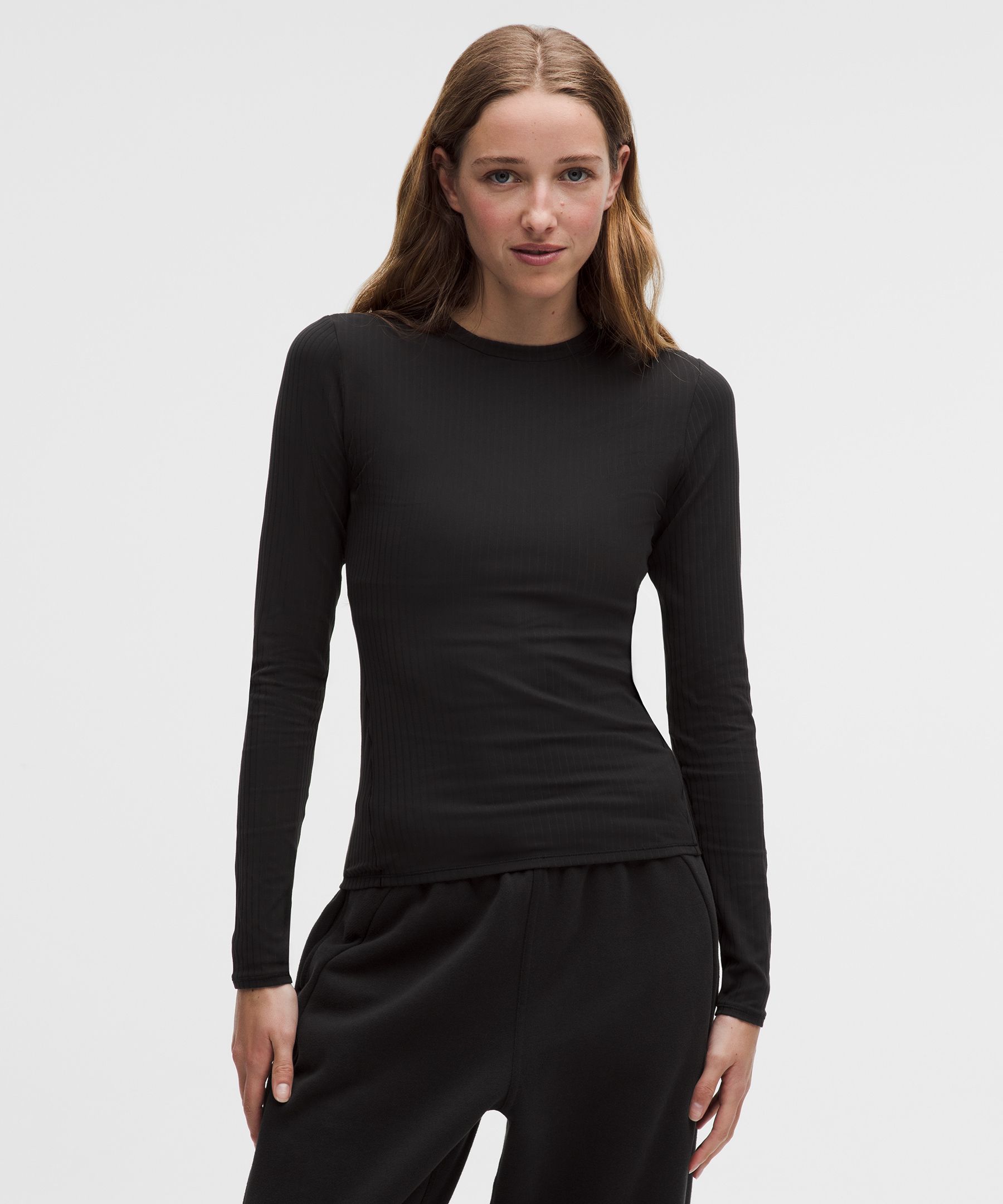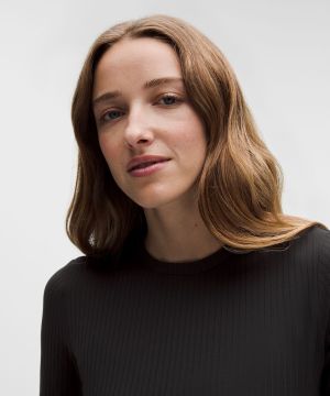 Ribbed Nulu 女士罗纹圆领长袖 T 恤