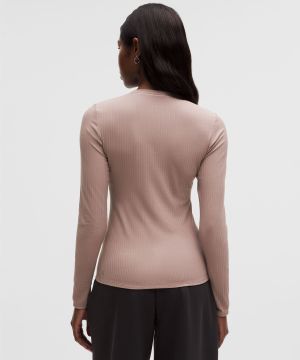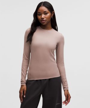 Ribbed Nulu 女士罗纹圆领长袖 T 恤