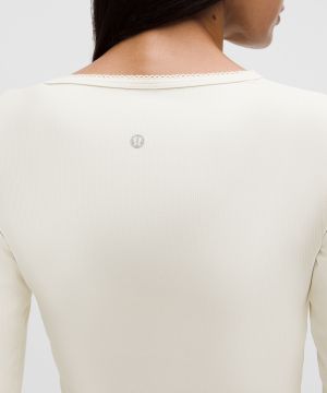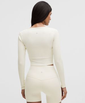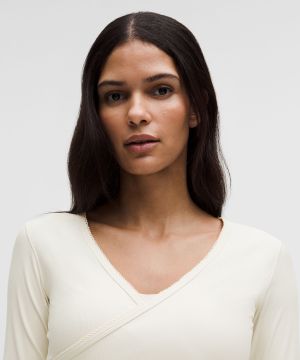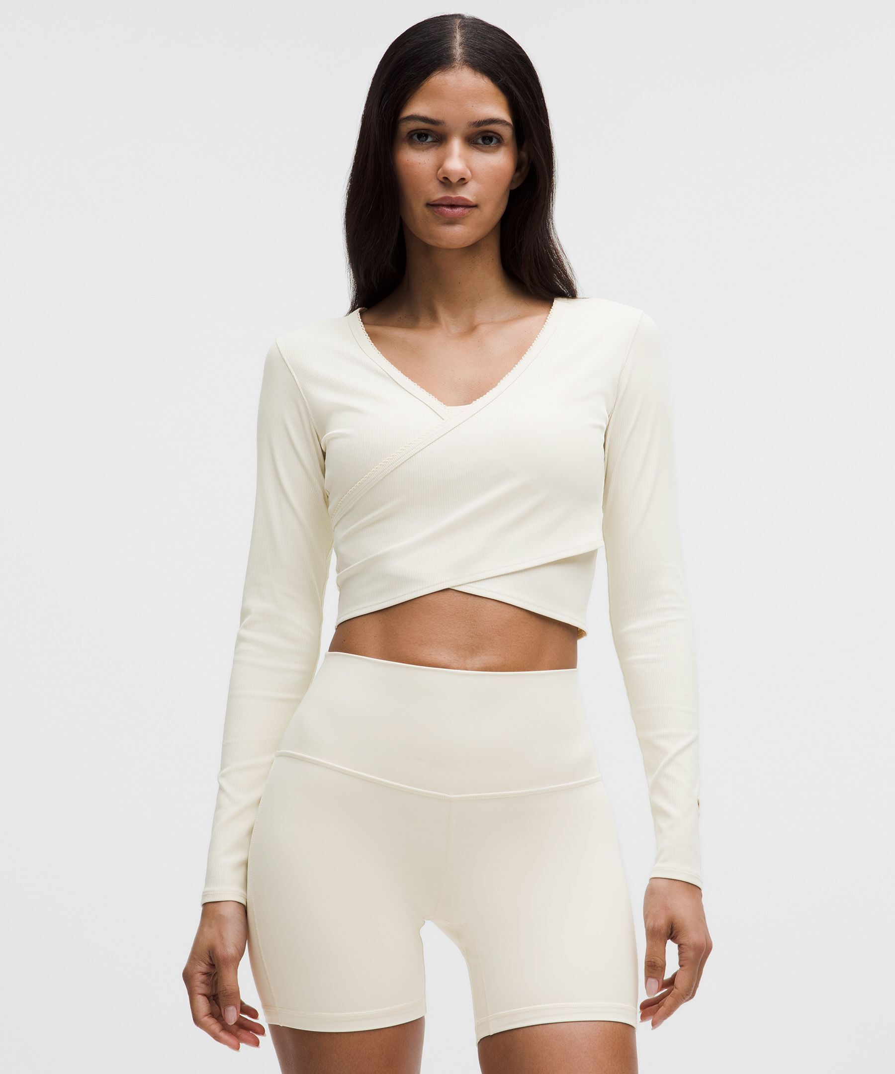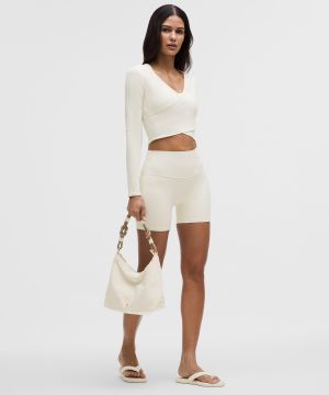 Nulu 女士运动罗纹前侧裹身设计长袖 T 恤 *心形开孔