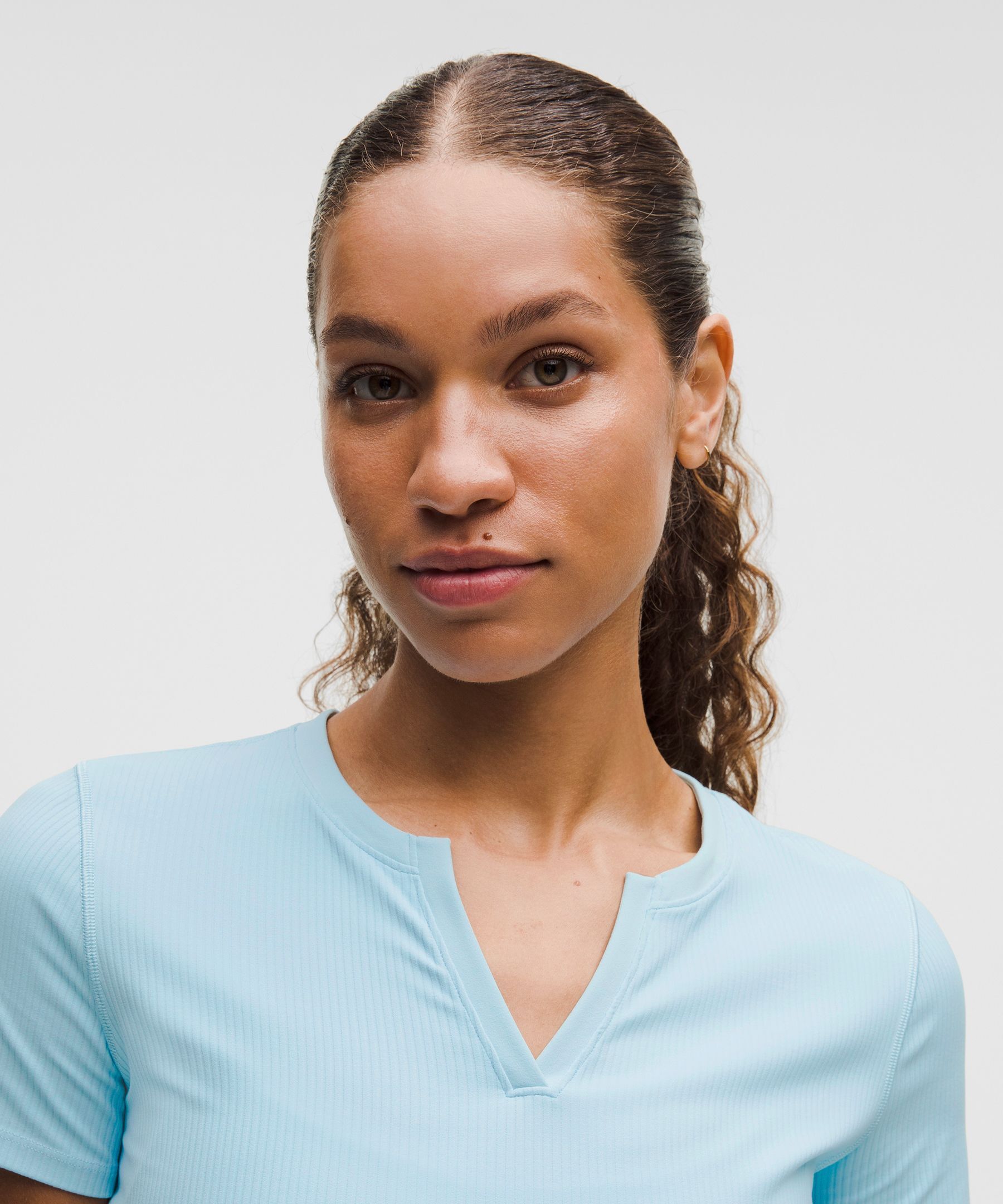 Ribbed Nulu™ 女士罗纹衣领开口短袖 T 恤