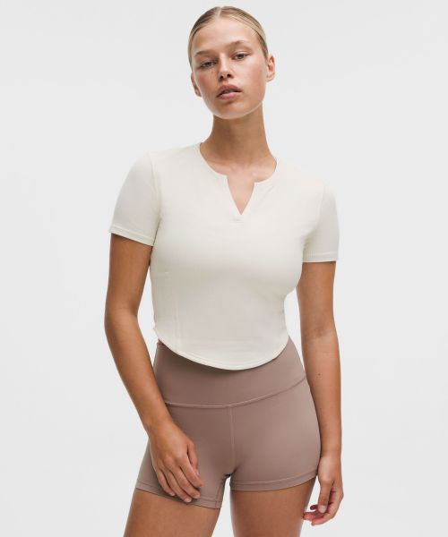 Ribbed Nulu™ 女士罗纹衣领开口短袖 T 恤