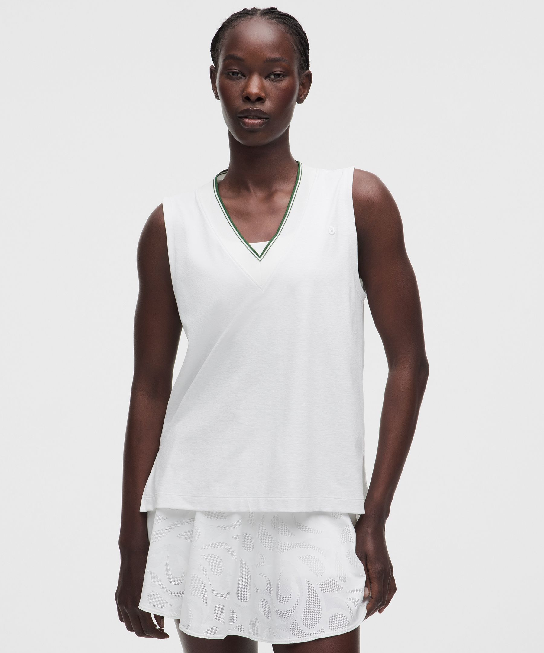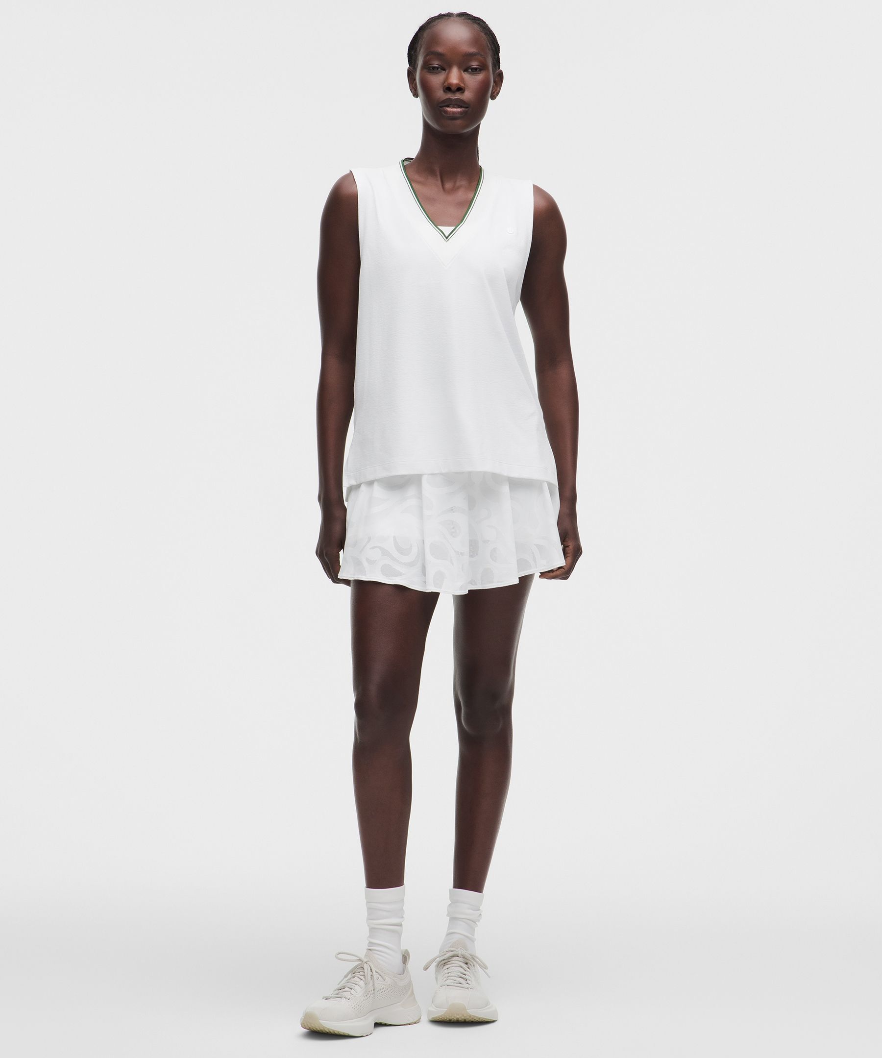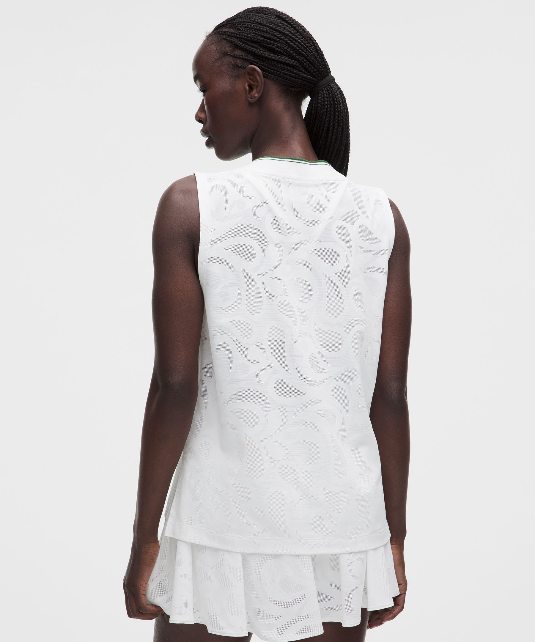 Paisley-Mesh 女士网球涡纹图案网面 V 领背心