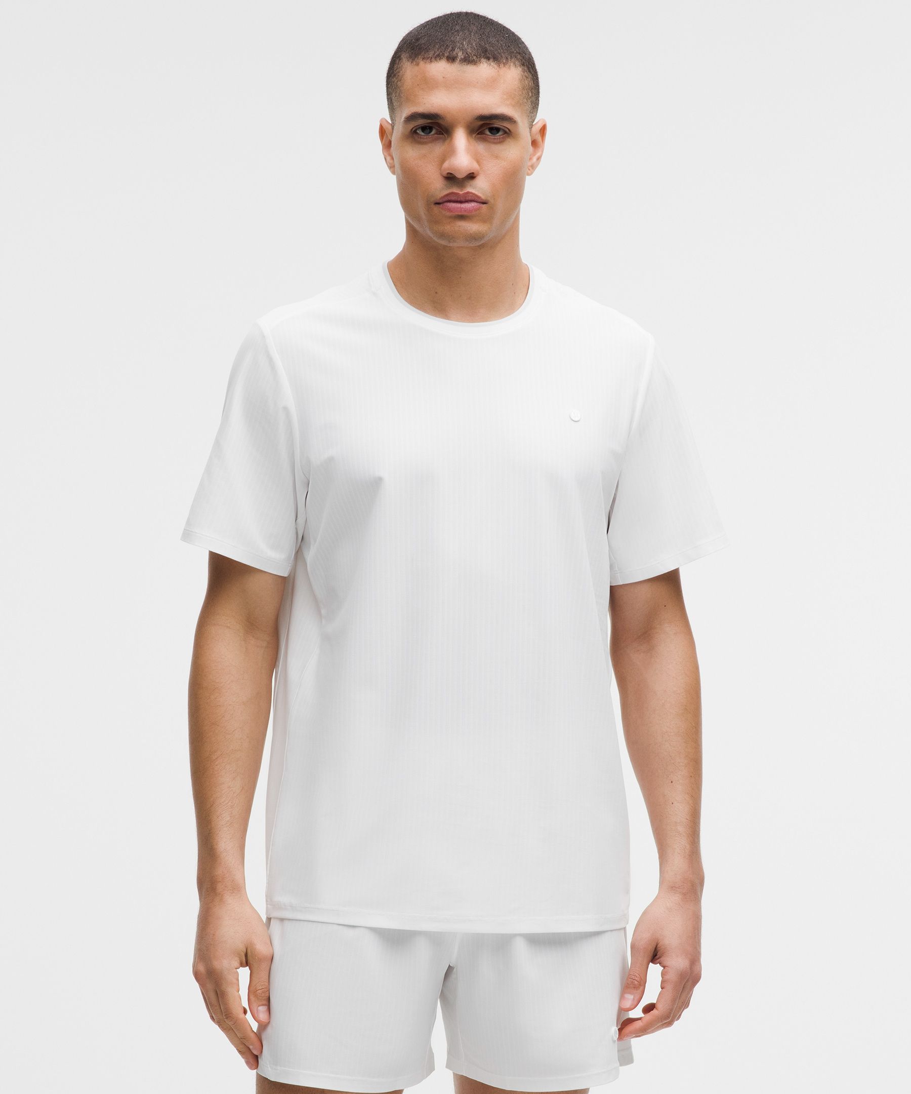 UV-Protective 男士网球条纹网面 T 恤